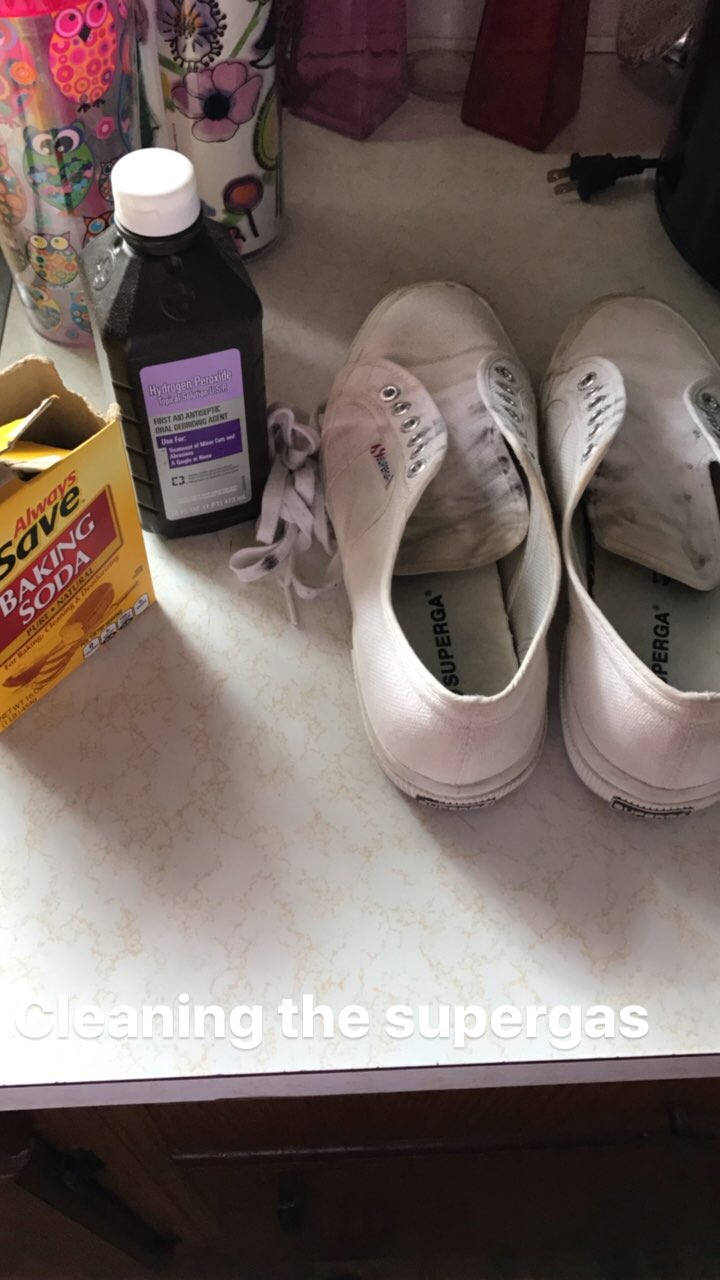It’s really easy. Just mix the baking soda, water, and hydrogen peroxide together. It will make a white paste. Then, use the toothbrush to coat the shoes in the paste. Do two layers of this to each shoe. Then, with the rest of the paste you can throw in your white shoelaces and mix them into the mixture. After you have done this, go ahead and set them outside in the sun for about 4 hours. This part is important because you would be amazed at what some sunshine will do for your white clothes! Finally, use the brush to scrape the paste off. You can also hit your shoes together to get a majority of the mixture off. Annnnd ya esta, WHITE SHOES. It didn’t take out all of the stains on my sneakers but it took care of most it. They look so much better than they did before. I had been super eager to try this hack because I had seen it on Pinterest, YouTube, and Buzzfeed so I’m happy that it actually works.