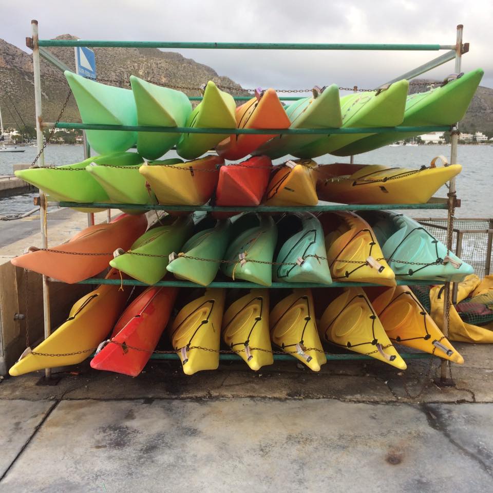 On the third day, we went to explore Port de Pollenca. Bry had never been there before and we wanted to check it out. Unfortunately, the weather was pretty bad this day. It was cold and raining off and on. Port de Pollenca was very, very deserted. Way more deserted than Port de Soller, I mean there was nobody to be found anywhere. It felt like a ghost town. It had a very eerie feeling because of that. Because of the lack of activity, we only stayed for an hour or so. Most of the time in Pollenca was spent checking out the boats and sitting on a dock to take in the mountain/Mediterranean views.